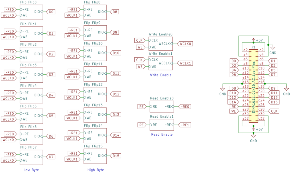 Of course I now need to use 16 of the Flip Flops with tri-state output. But I can hopefully get away with only two of the Read Enable and Write Enable circuits.