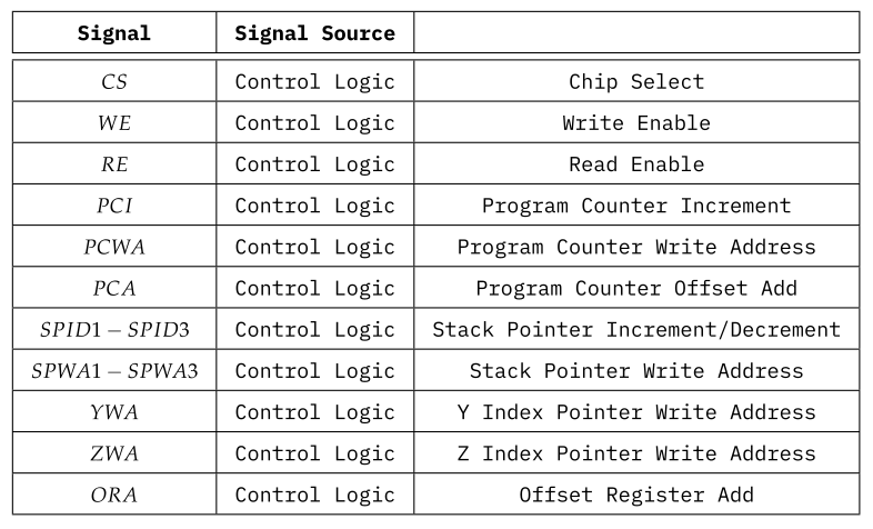 The Index Pointers are 20 bit registers that contain a memory address that can be used by the CPU for indirect addressing of the main memory. It can be read and written to. Their control signals are $ YWA $, $ ZWA $, $ CS $, $ WE $ and $ RE $.