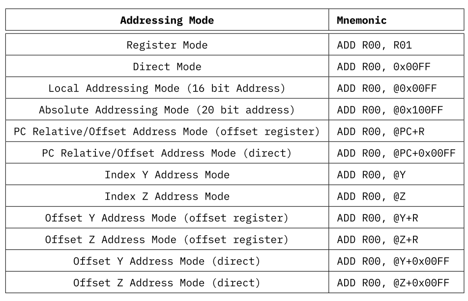 Finally, there needs to be some thought put into the design of the Mnemonics used to designate the Memory Modes as defined under Data Transfer Operations for use in an Assembler program.