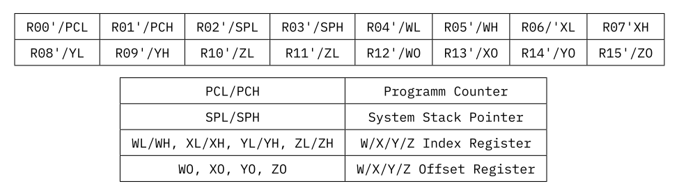 Now the Special Purpose Registers are a set of different registers that are used for special purposes by the CPU. They are located in the second Register Bank, covering R00' to R15'. They can be switched out for R00 to R15, as to make work with them slightly easier.