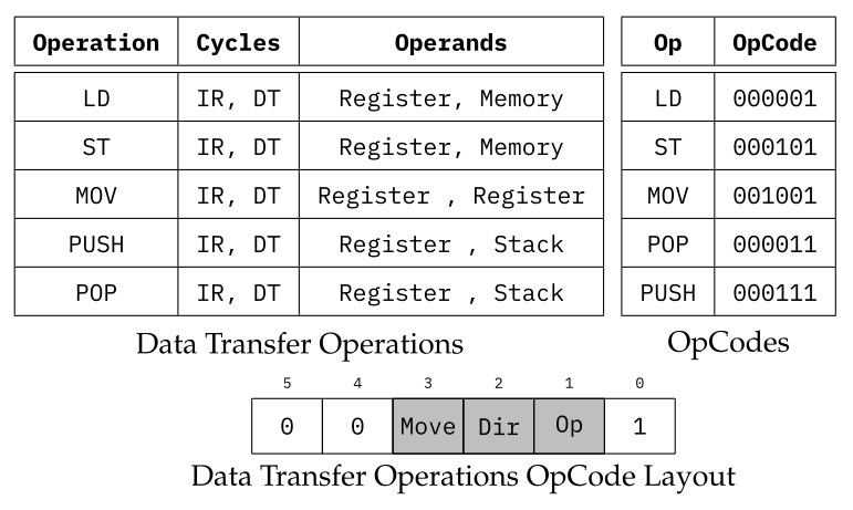 The Data Transfer Operations can be separated into operations that either interact with memory or the single one that only deals with registers.