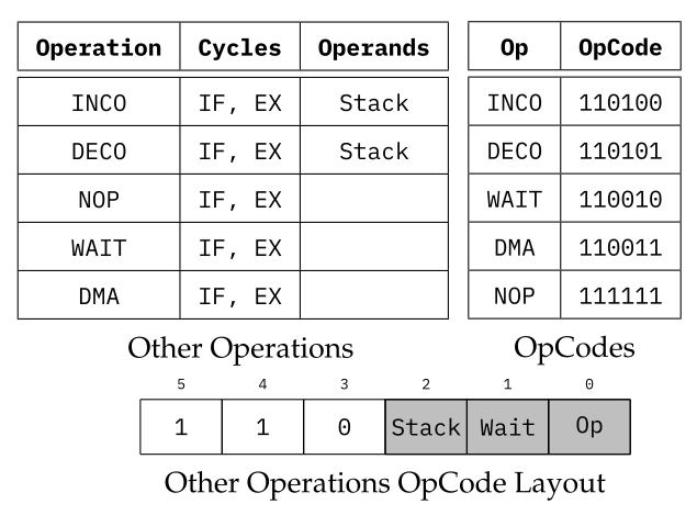 0) and three (1), respective one and no operands/addresses. - Bits 1 and 0 are used to identify the operation.